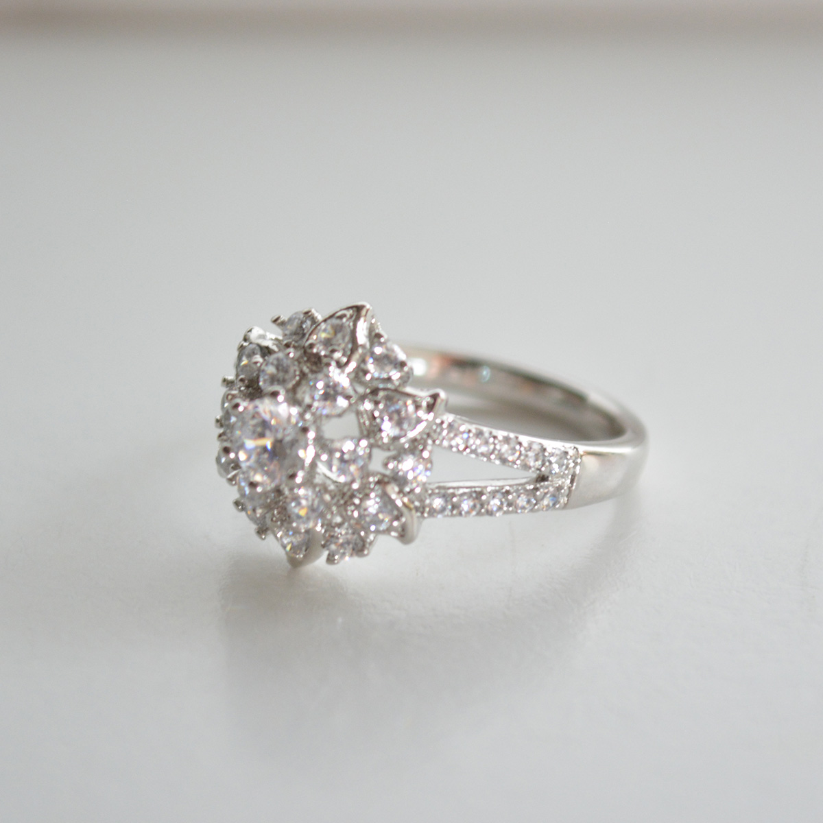 El Anillo Princess Snow deslumbra con su diseño floral cubierto de circonias que evocan copos de nieve bajo la luz. Su brillo plateado y forma simétrica transmiten elegancia, dulzura y sofisticación en una sola pieza.