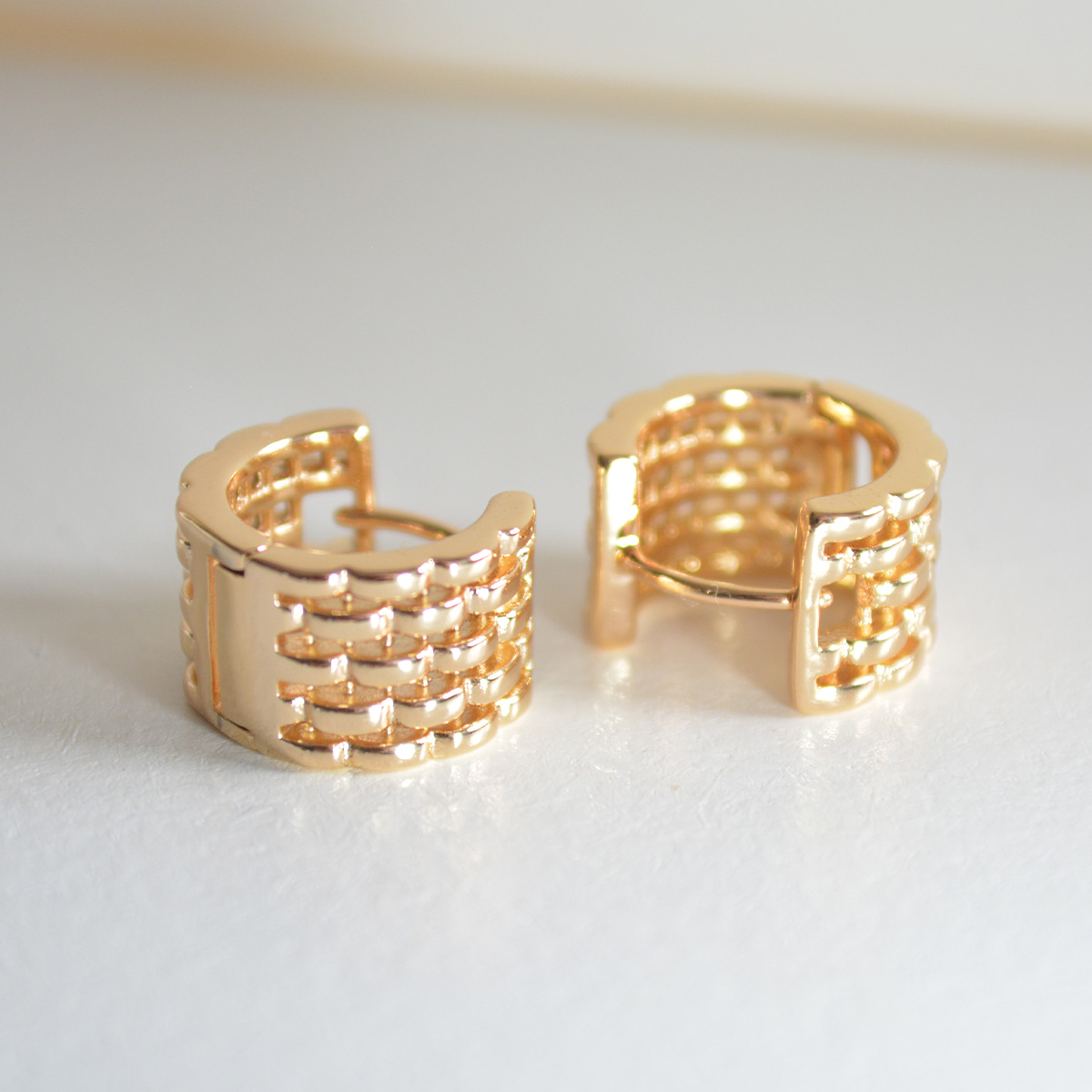 Los Aretes Salvatore presentan un diseño dorado con acabado entrelazado que refleja la luz de forma sutil. Sofisticados, cómodos y fáciles de combinar.